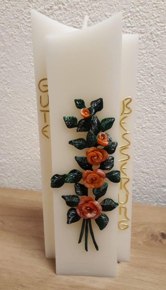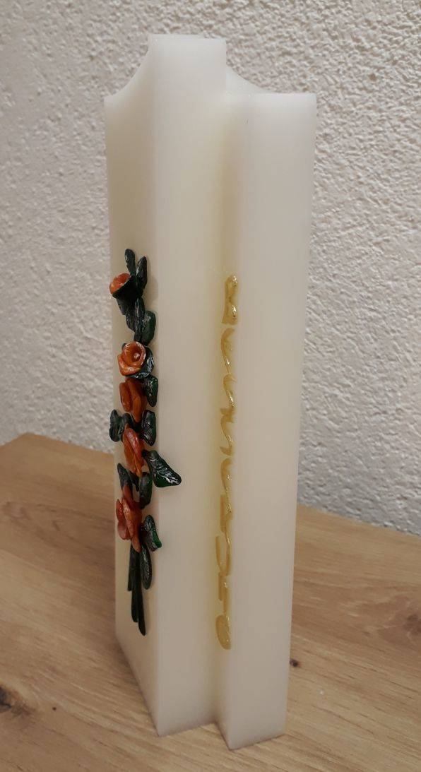 Kerze mit Hochrelief Rose Grösse: 22 x 8 x 4 cm Preis: Fr. 32.-