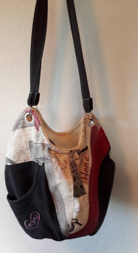 Schöne vielseitig verwendbare Tasche aus gebrauchten Hosen, Kork und Dekostoff.