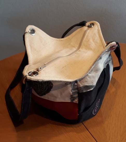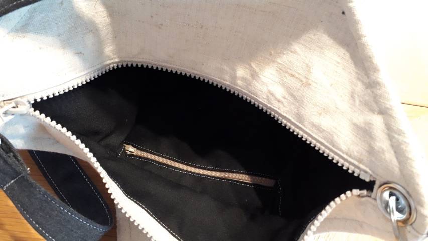 Die Tasche ist gefüttert und hat 2 Innentaschen.