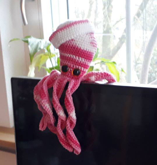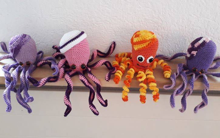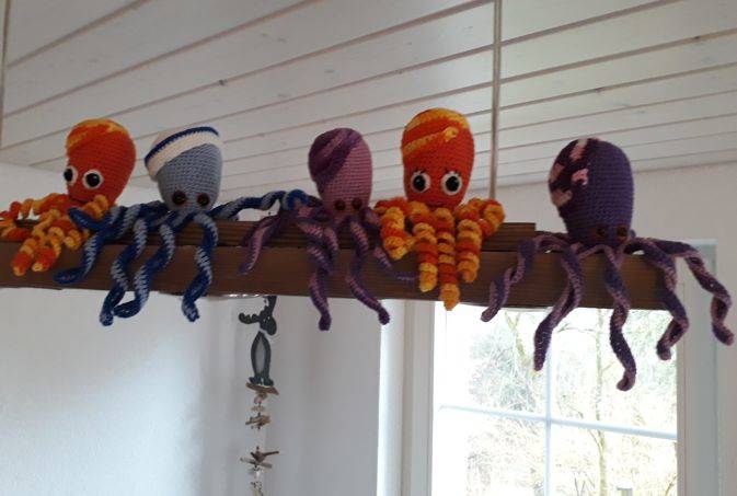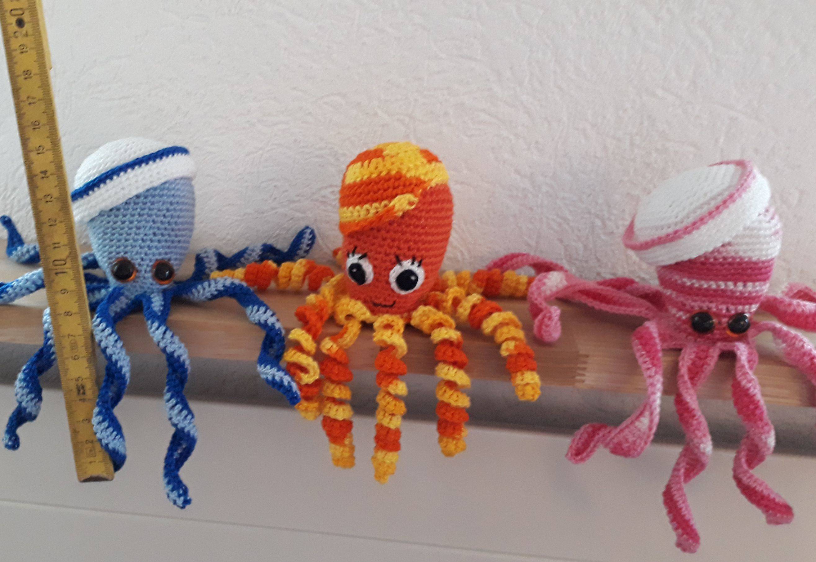 Die Tintenfische mit gehäkelten Augen sind auch für Säuglinge ( Frühchen ) geeignet. Füllung in einem Strumpf.
